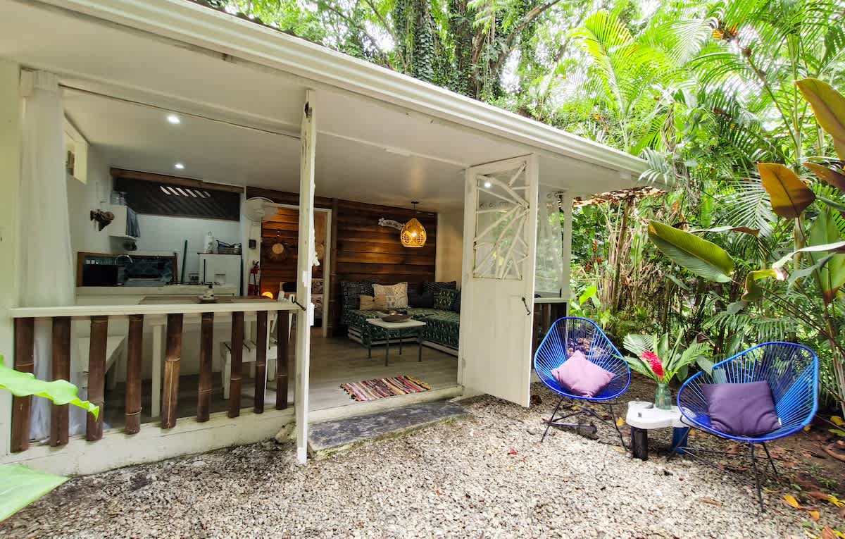 Mini Up is a cozy Caribbean bungalow just 650m from Playa Chiquita. Surrounded by lush gardens where monkeys, sloths, and agoutis often visit, it’s the perfect escape into nature. The bedroom features a queen bed and AC for your comfort. Located in a peaceful area with great restaurants and stunning beaches nearby, Mini Up is ideal for couples seeking relaxation and authentic Caribbean vibes.