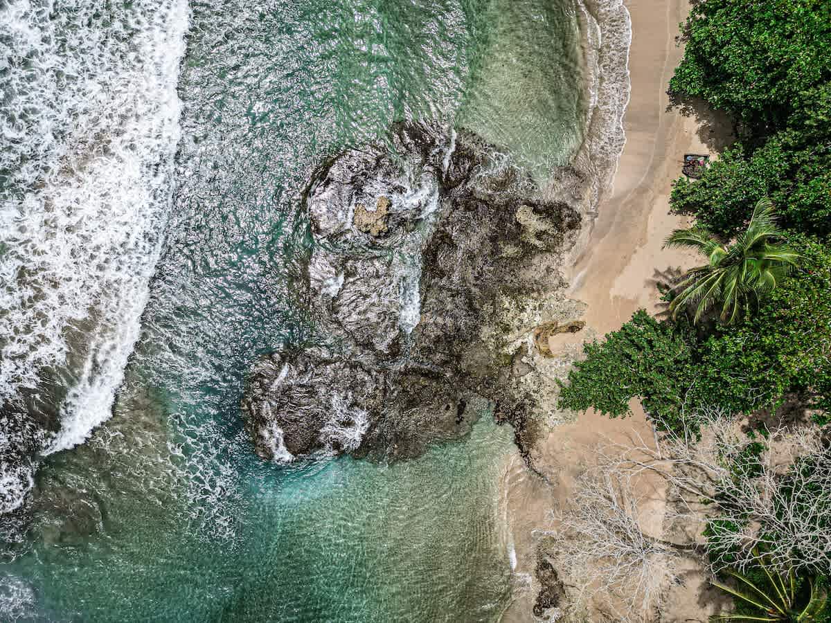 Playa Chiquita is one of the hidden gems of Costa Rica’s Southern Caribbean. This small, peaceful beach is surrounded by lush jungle and can be accessed only by foot or bicycle along charming trails, adding to its unique charm. Its calm, clear waters are perfect for swimming or relaxing, while monkeys, sloths, and exotic birds create a true nature experience. Around the area, you’ll find cozy restaurants and local cafés to enjoy delicious Caribbean flavors after a day at the beach.
