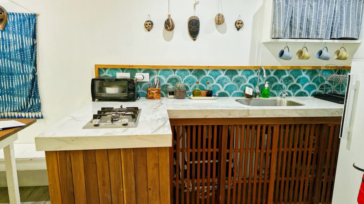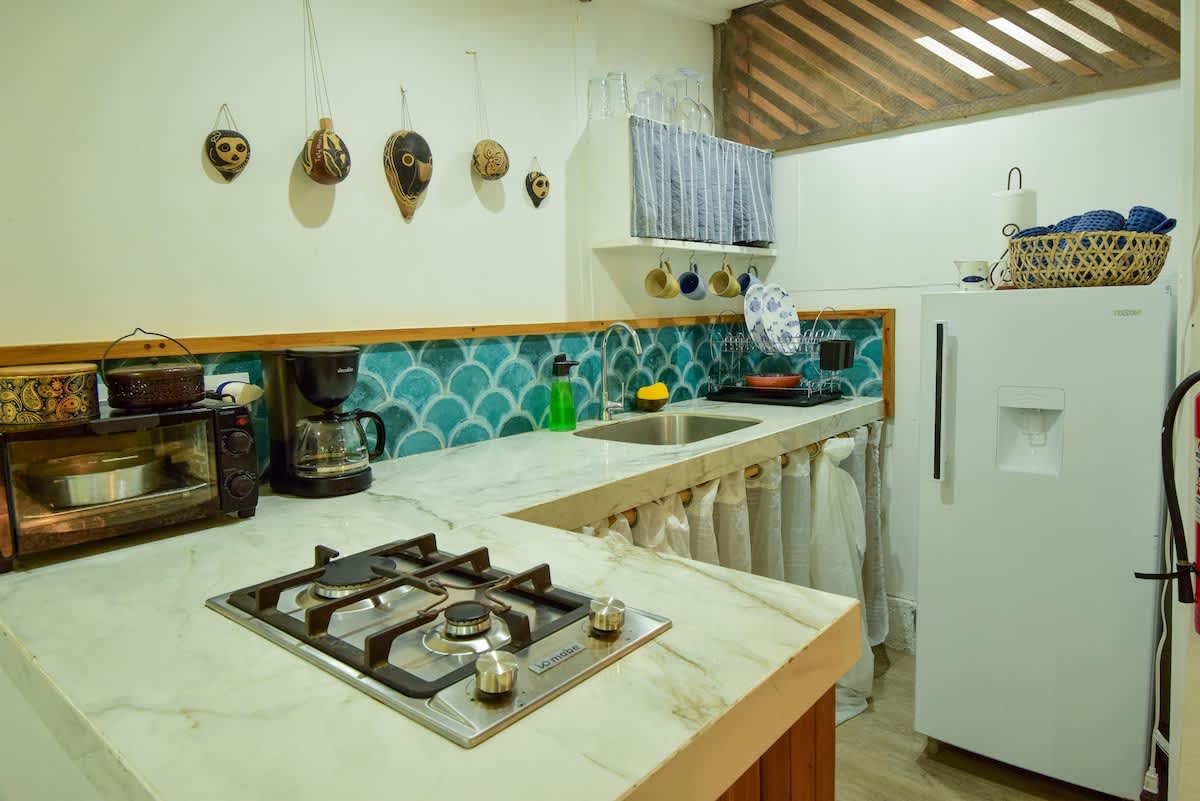It features a queen-size bed, air conditioning, and a fully equipped kitchen so you can prepare your own meals with ease. Bath and beach towels are provided for your convenience.