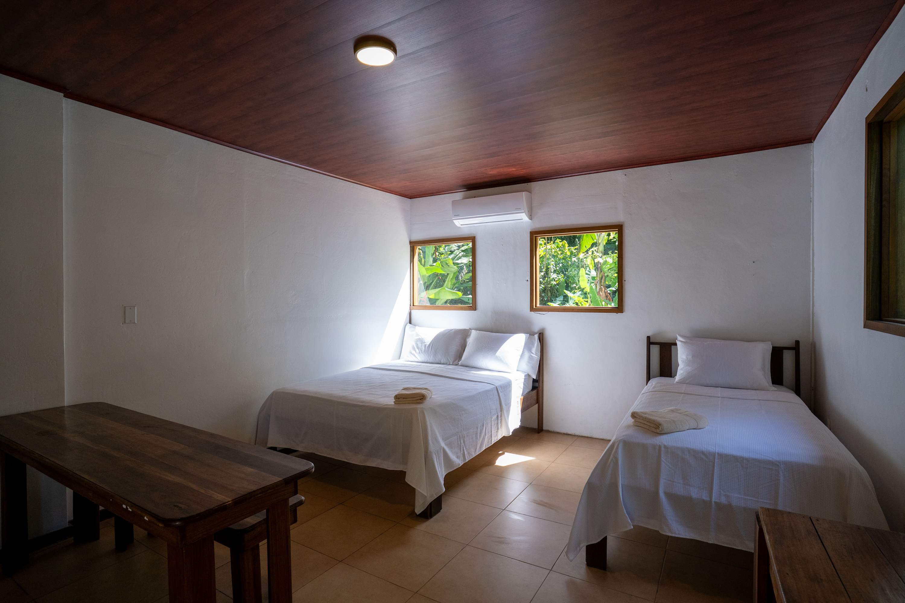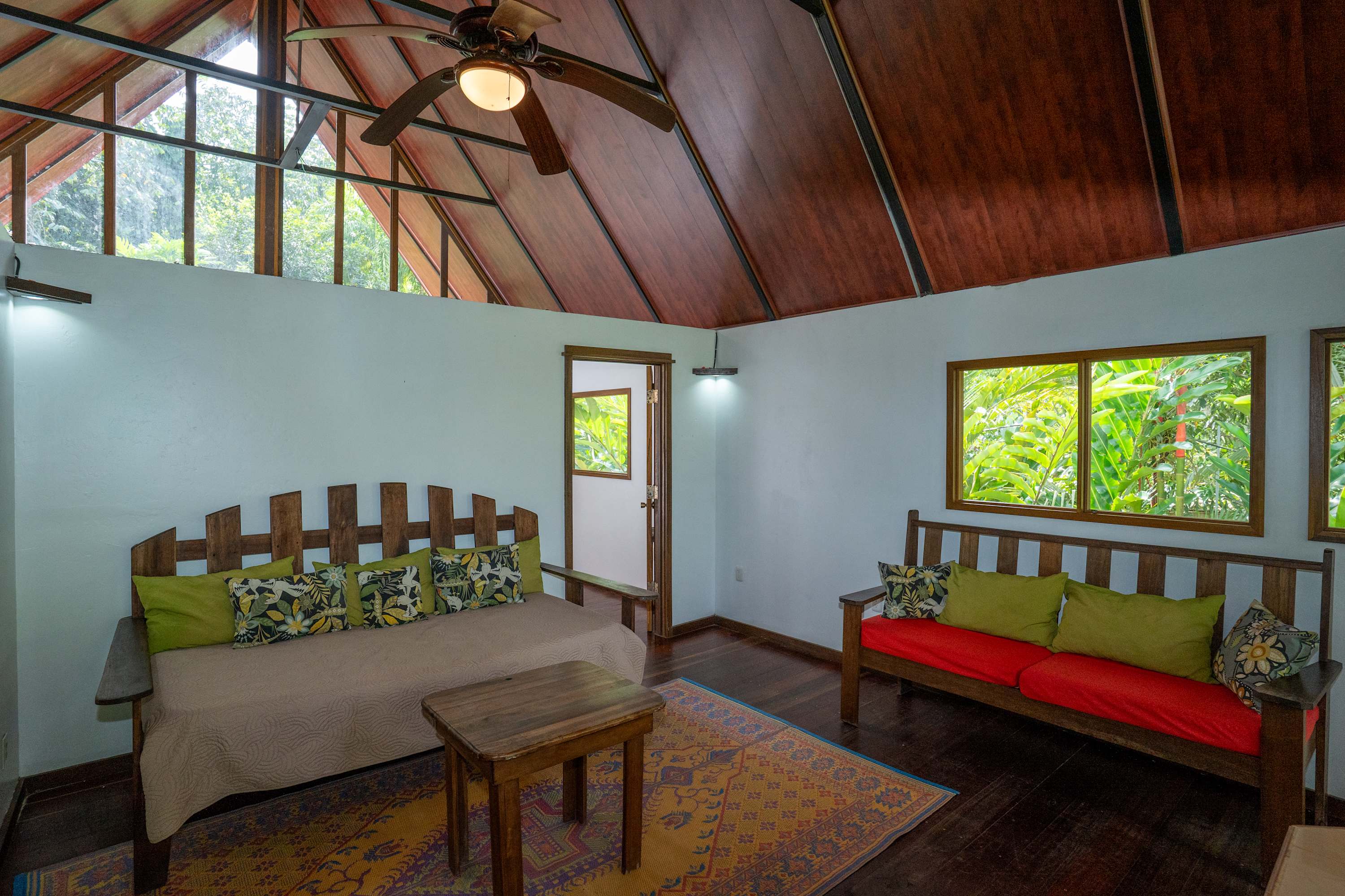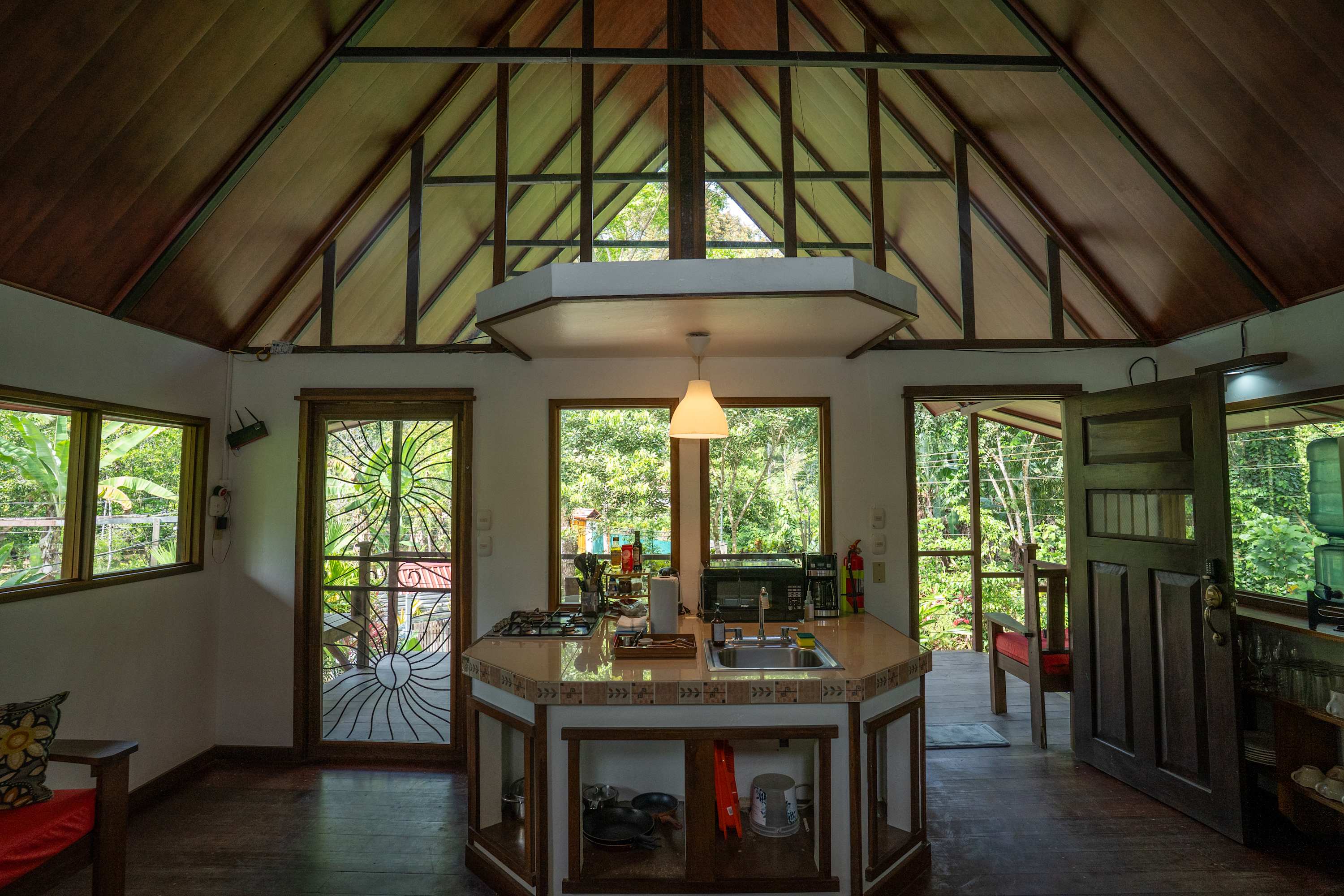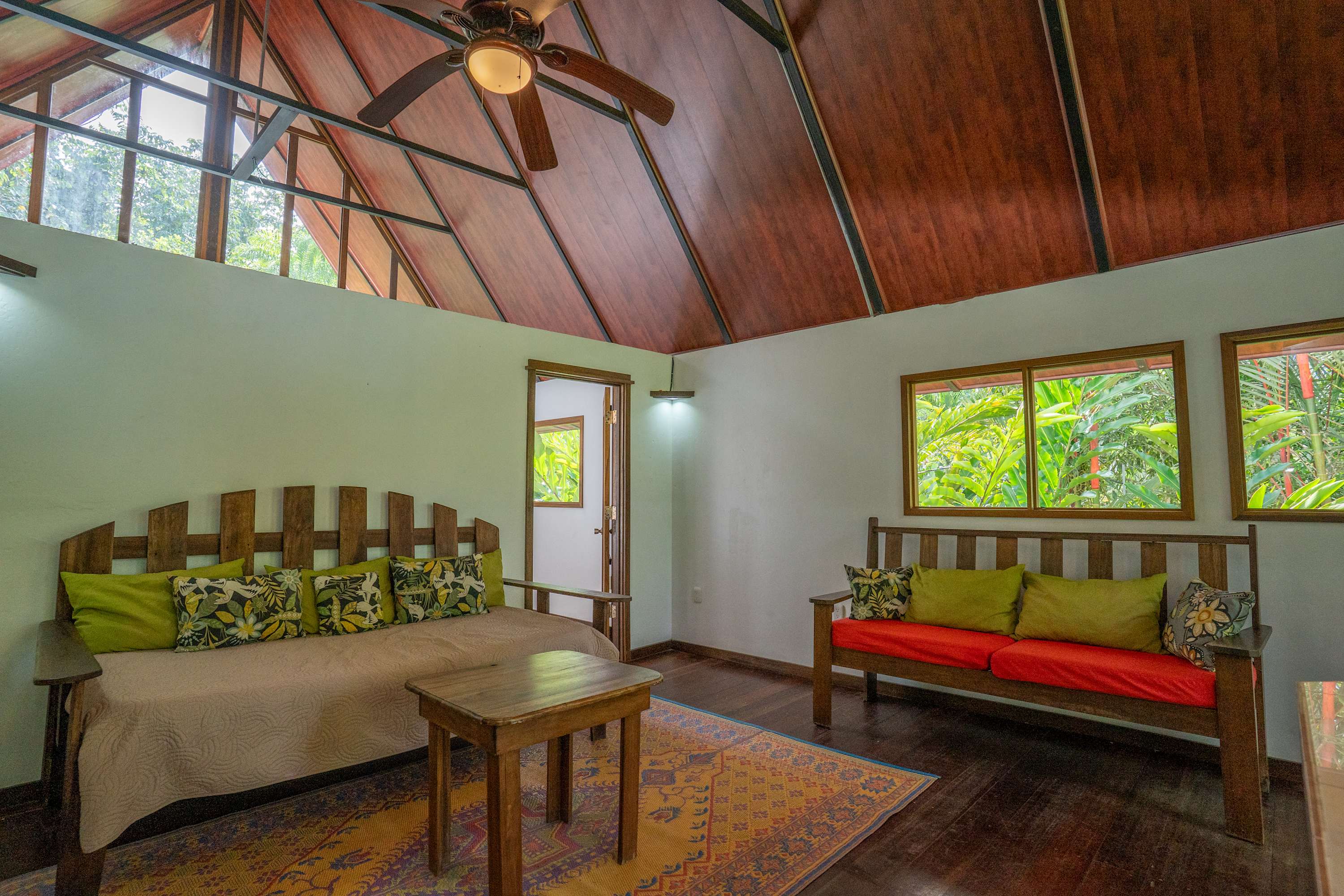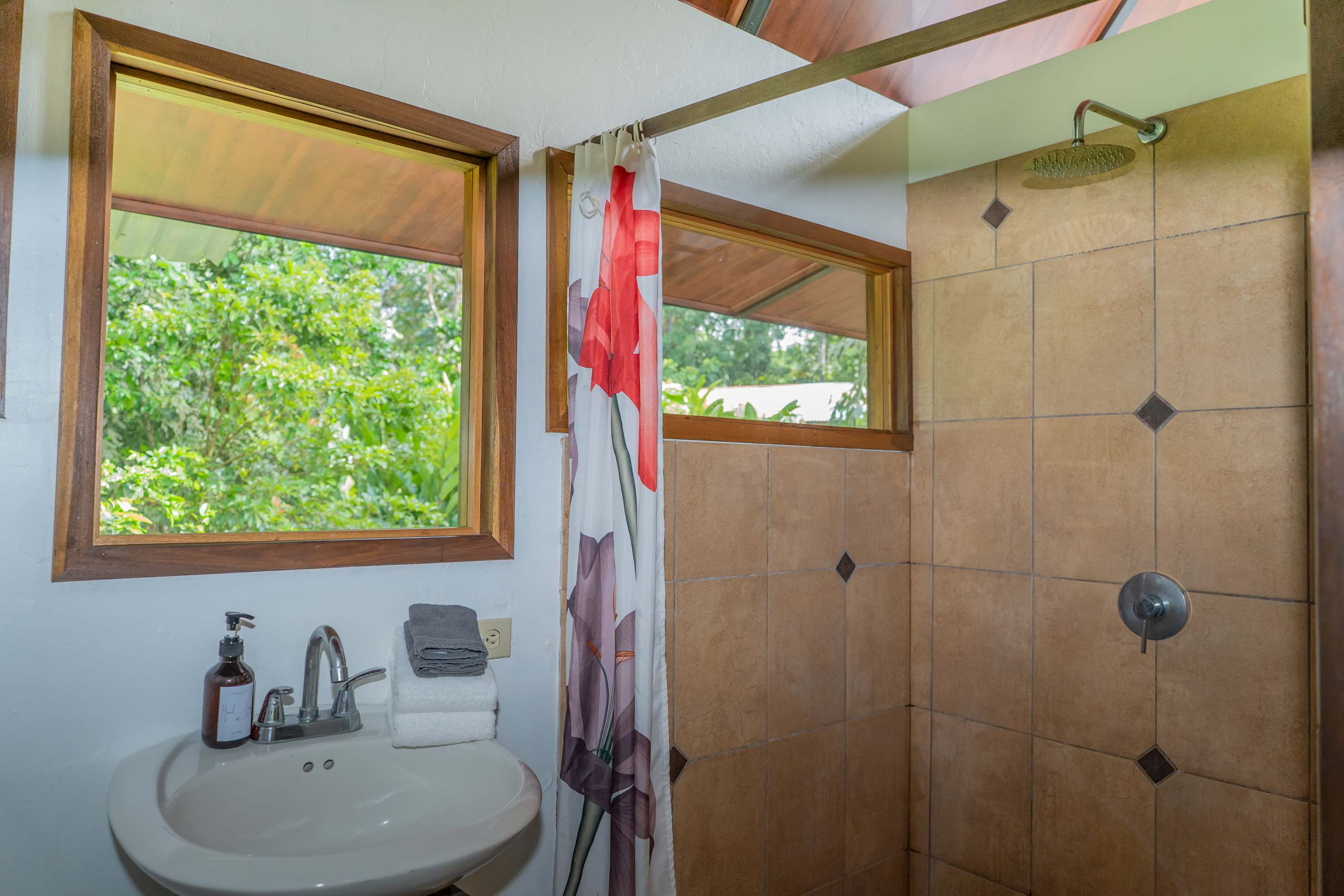The second floor offers a fully equipped kitchen, perfect for preparing meals during your stay, along with a cozy living area. The home also includes a TV with internet access, air conditioning in all bedrooms, and a terrace where you can relax surrounded by tropical nature.