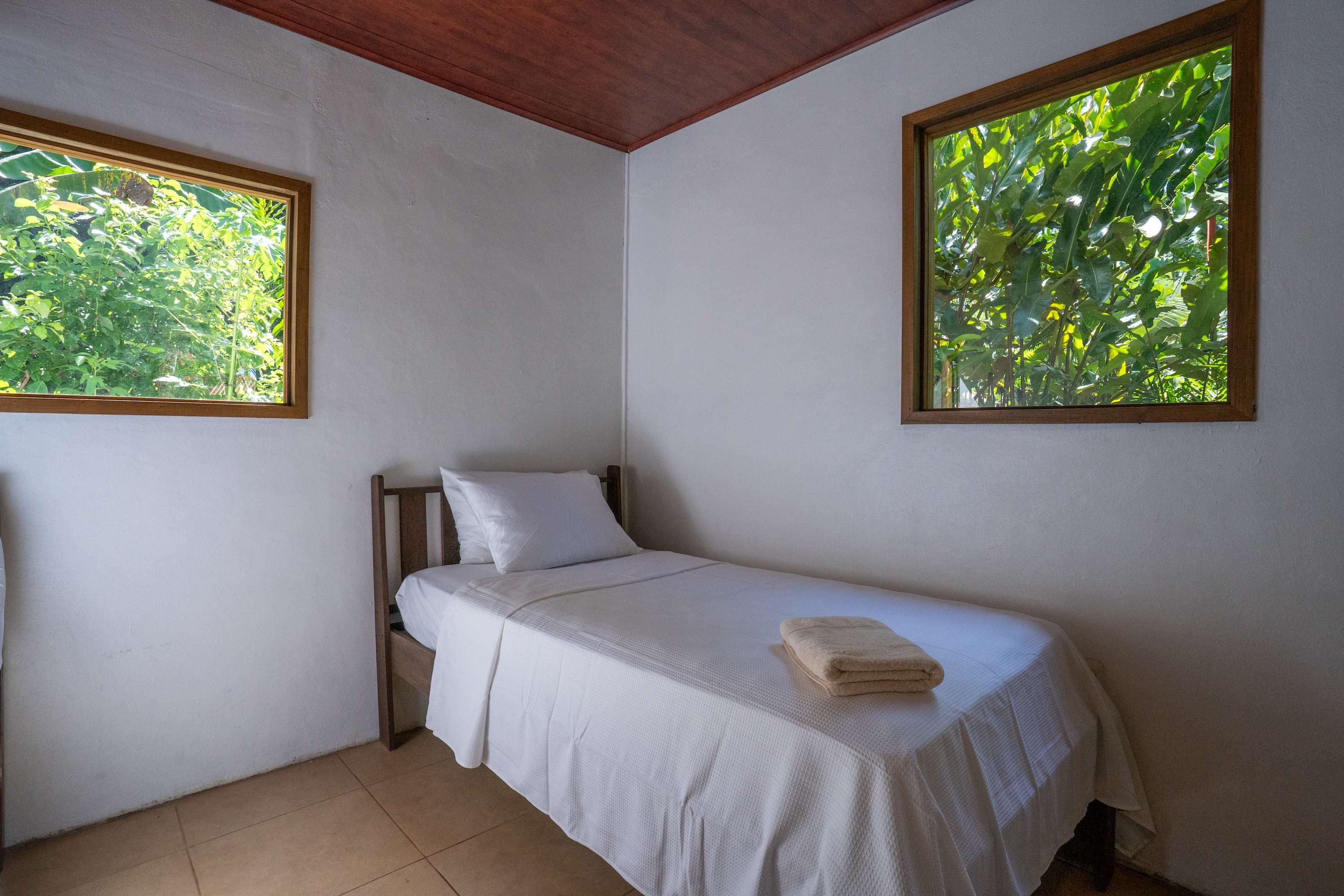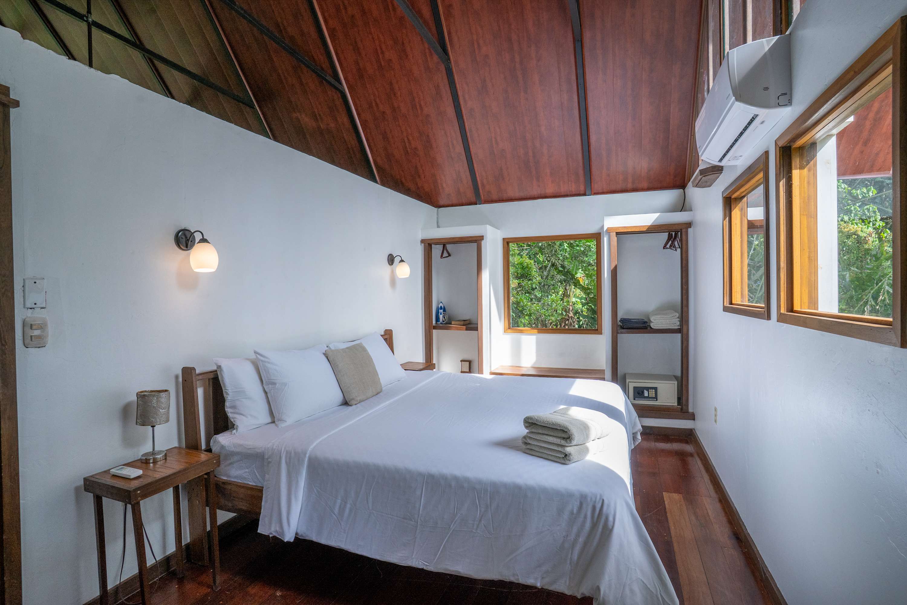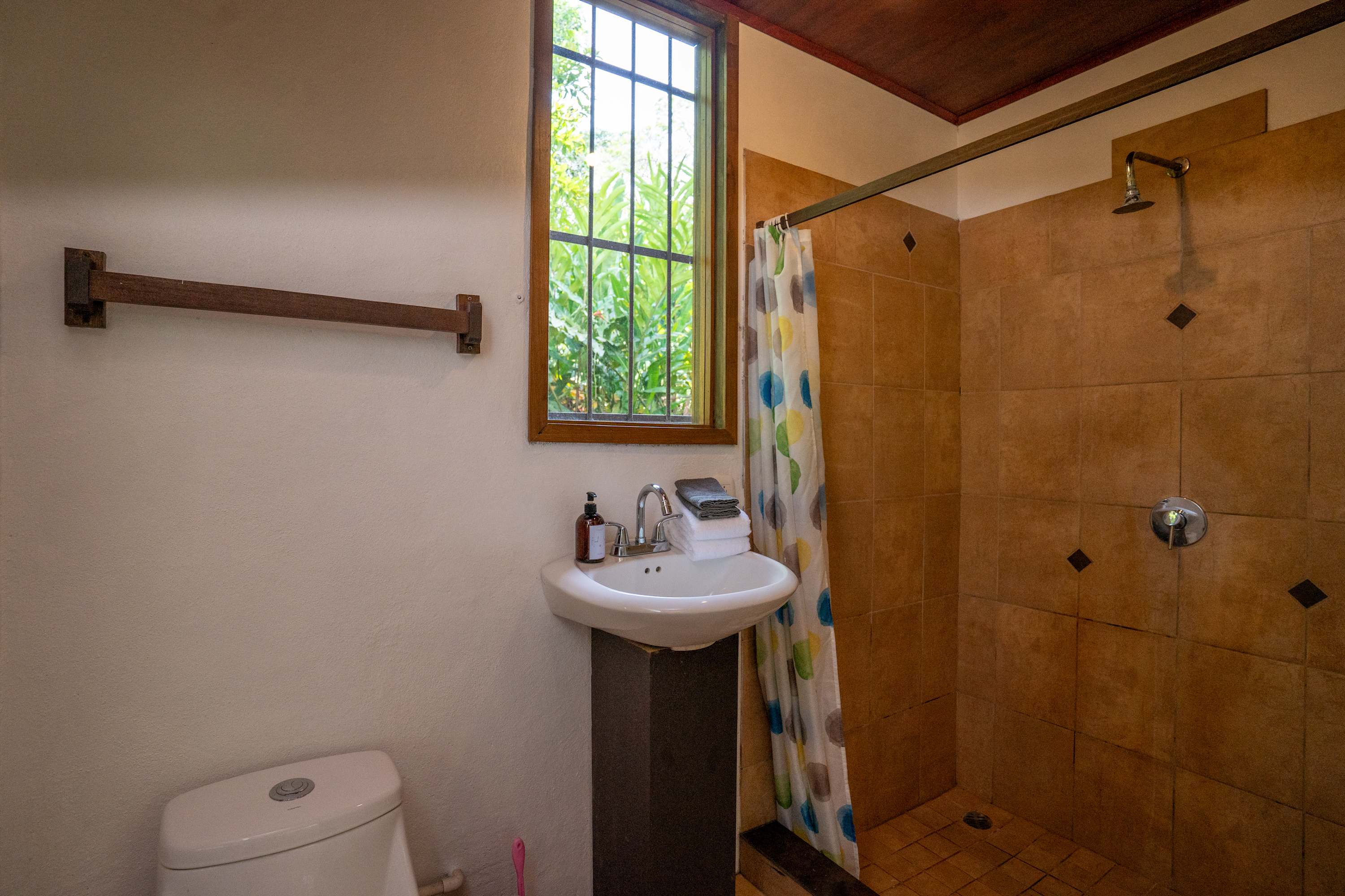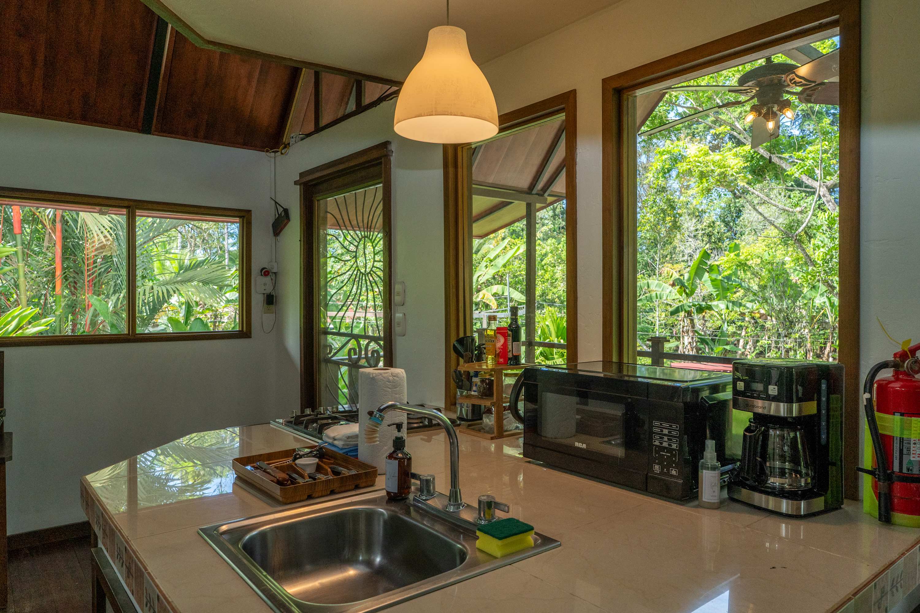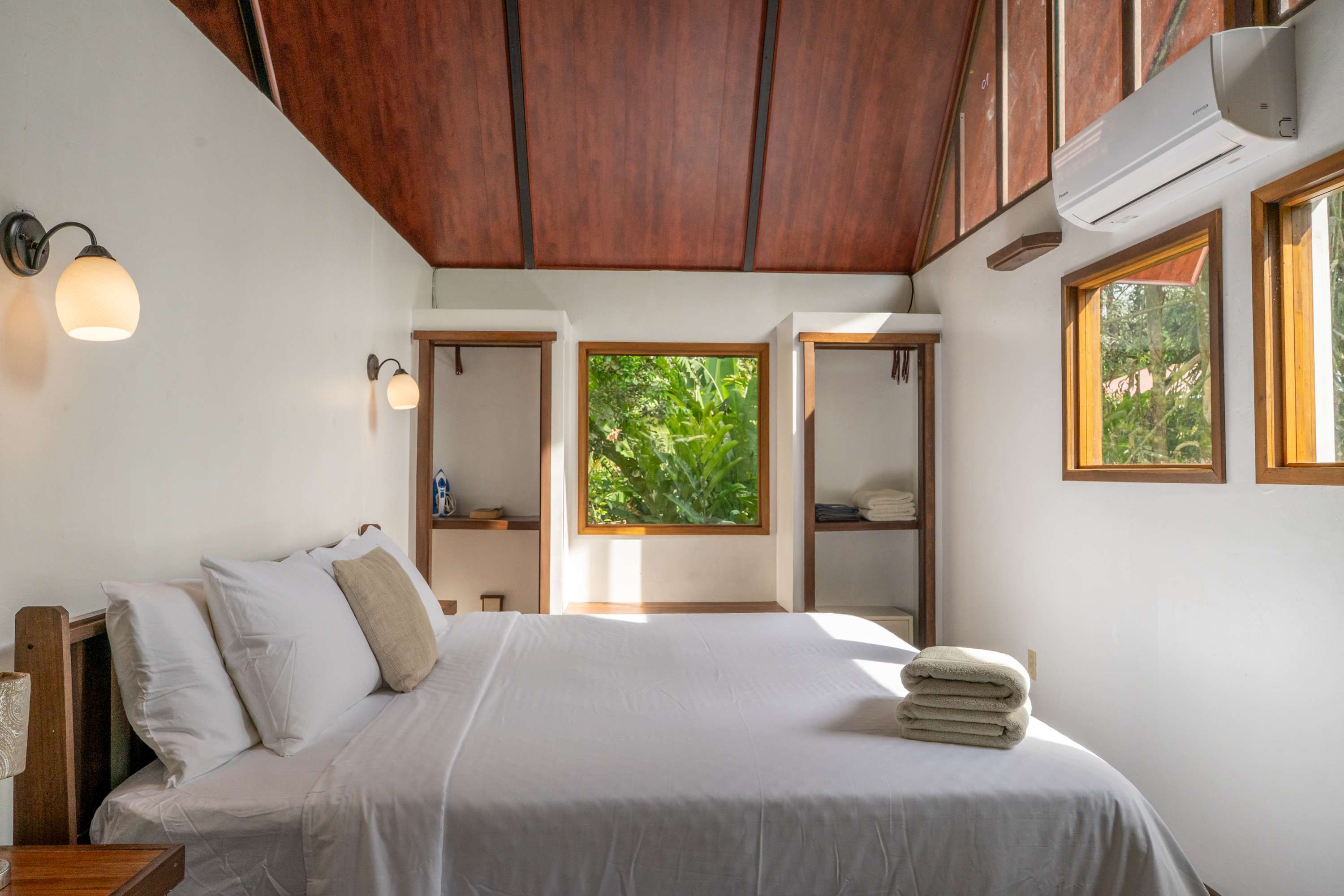 The second floor offers a fully equipped kitchen, perfect for preparing meals during your stay, along with a cozy living area. The home also includes a TV with internet access, air conditioning in all bedrooms, and a terrace where you can relax surrounded by tropical nature.