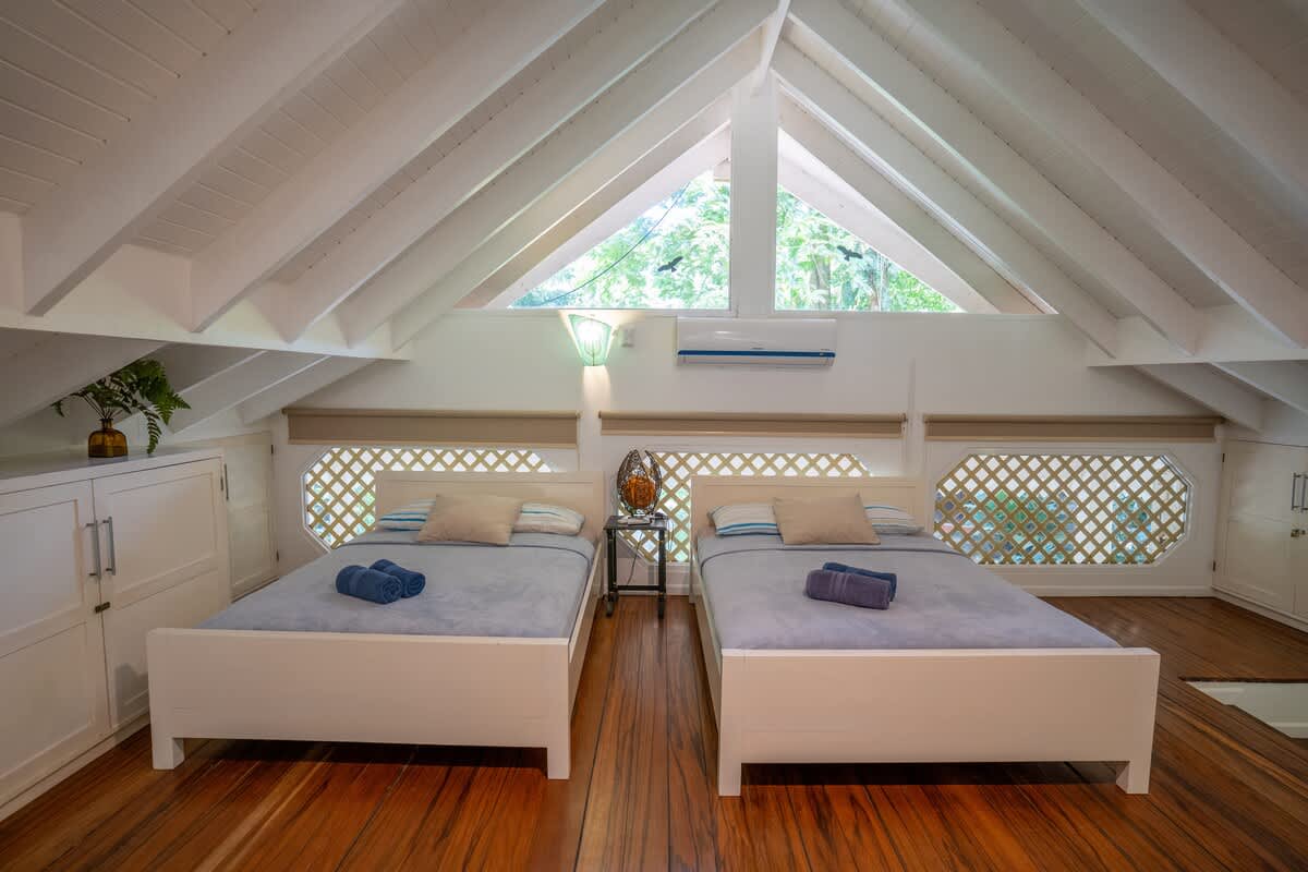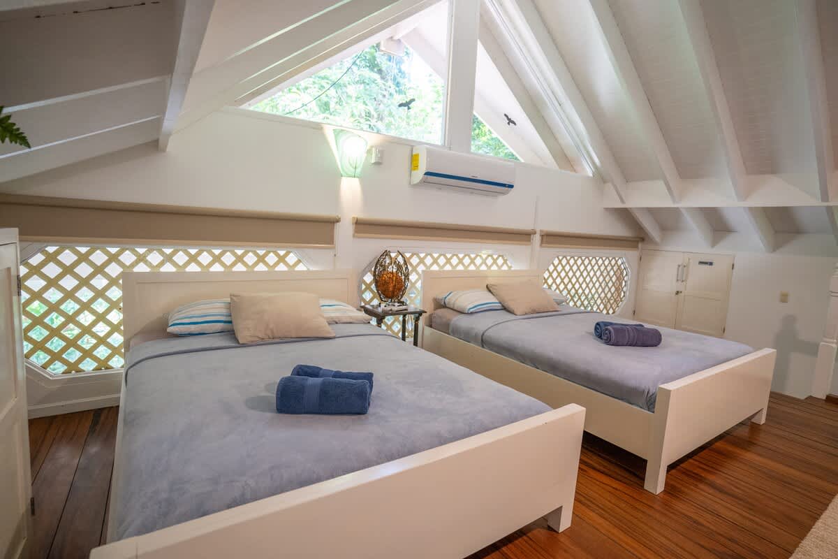 La casa está totalmente protegida con mosquiteras en las ventanas, dispone de aire acondicionado y ventiladores, y tiene capacidad para 6 personas.